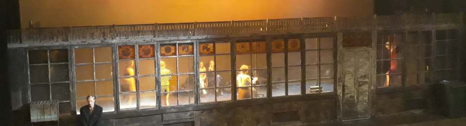 Pasakysiu tiesiai šviesiai – apie ką buvo spektaklis, aš nesupratau. Scenografė Goda Palekaitė scenoje įkurdino konstrukciją, kuri padalijo sceną pusiau. Buvo vienos durys ir daug langų. Kažkas nuolat vyko anapus, kažkas šiapus. Dar spektaklio metu aš mačiau aprūdijusią pašto dėžutę, šiukšlių konteinerį, radiją, grojantį senus įvairių šalių šlagerius ir 8 aktorius, kurie šoko, mušėsi, pykosi, mylavosi, mirė, prisikėlė ir dar veikė kažką, ką man sunku įvardinti žodžiais. Beje, apie žodžius: nebuvau skaičiusi prieš spektaklį jokių atsiliepimų, tad iš pradžių nesupratau – kodėl aš nieko nesuprantu, ką jie scenoje kalba??? Lyg vienas lietuviškas žodis, kitas – panašus į latvišką, Rytis Saladžius dainavo dainą vokiškai, o Rimantė Valiukaitė garsiai nusikeikė angliškai iš F*** raidės. Tik po kažkiek laiko man dingtelėjo mintis, kad aktoriai kalba… niekieno kalba. Neegzistuojančia, pačių sukurta.  O ką jie tuo nori pasakyti, suprask pats. Įjunk vaizduotę, tsakant