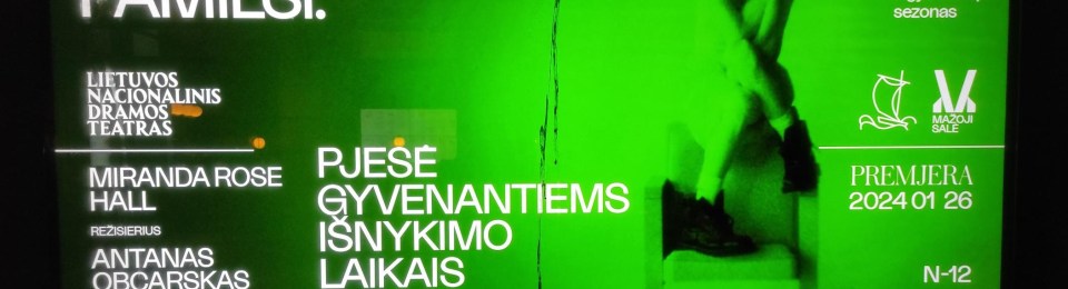 Pasielgsiu man neįprastai ir pirmiausiai pasidalinsiu ne savo įspūdžiu, o pacituosiu, kaip šis spektaklis pristatomas Lietuvos nacionalinio dramos teatro svetainėje: „Lietuvos nacionalinis dramos teatras kartu su dar 13 kitų lyderiaujančių Europos teatrų (Šveicarijos, Italijos, Prancūzijos, Kroatijos, Vengrijos, Švedijos Portugalijos, Belgijos, Taivano, Slovėnijos ir kt.) pirmą kartą istorijoje vykdo bendrą projektą STAGES, siekiant sukurti tvaresnio teatro metodiką. Visi projekte dalyvaujantys teatrai pagal amerikiečių autorės Miranda Rose Hall pjesę kuria spektaklį. Siekiama, kad spektaklis „Pjesė gyvenantiems išnykimo laikais“ kiekvienoje šalyje būtų kuriamas taupant išteklius, taip pat atsisakant nebūtinų kelionių, skrydžių. Rodant spektaklį, jame gali būti naudojama tik ta elektra, kurią sugeneruoja scenoje esantys aktoriai, naudojama galia negali viršyti 150 vatų. Spektaklio sukūrimas yra finansuojamas Europos Sąjungos „Kūrybiškos Europos“ programos lėšomis.“ (www.teatras.lt)